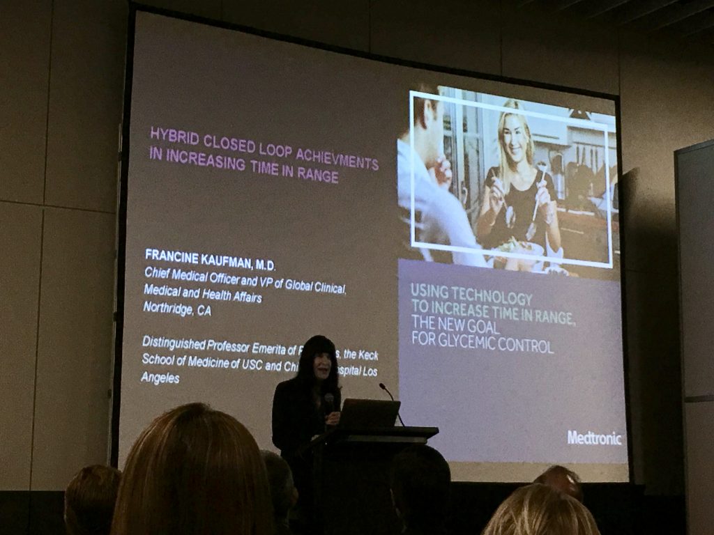 Del mismo modo, con la presentación inaugural de la Dra. Francine Kaufman, Chef Medical Officer & Vice President Global Medical, Clinical & Health Affairs, se enteraron de primera fuente sobre los pasos que está siguiendo la compañía para llegar hasta la completa entrega automática de insulina, con la siguiente escala que es la MiniMed 670G, un sistema híbrido de asa cerrada.